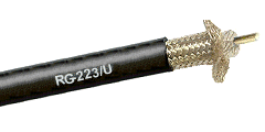 Kabel koncentryczny RG223/U, podwójny oplot wykonanie MIL-C17F, żyła i oploty z drutów miedzianych srebrzonych, cena za krążek 100m.