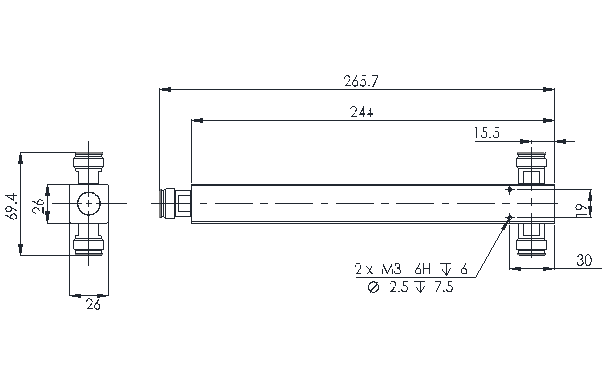 Odgałęźnik (Tapper) 6dB (4:1), Coupling 7dB, 694-3800MHz, 200W, złącza N-f, IP65 Low PIM, RFS