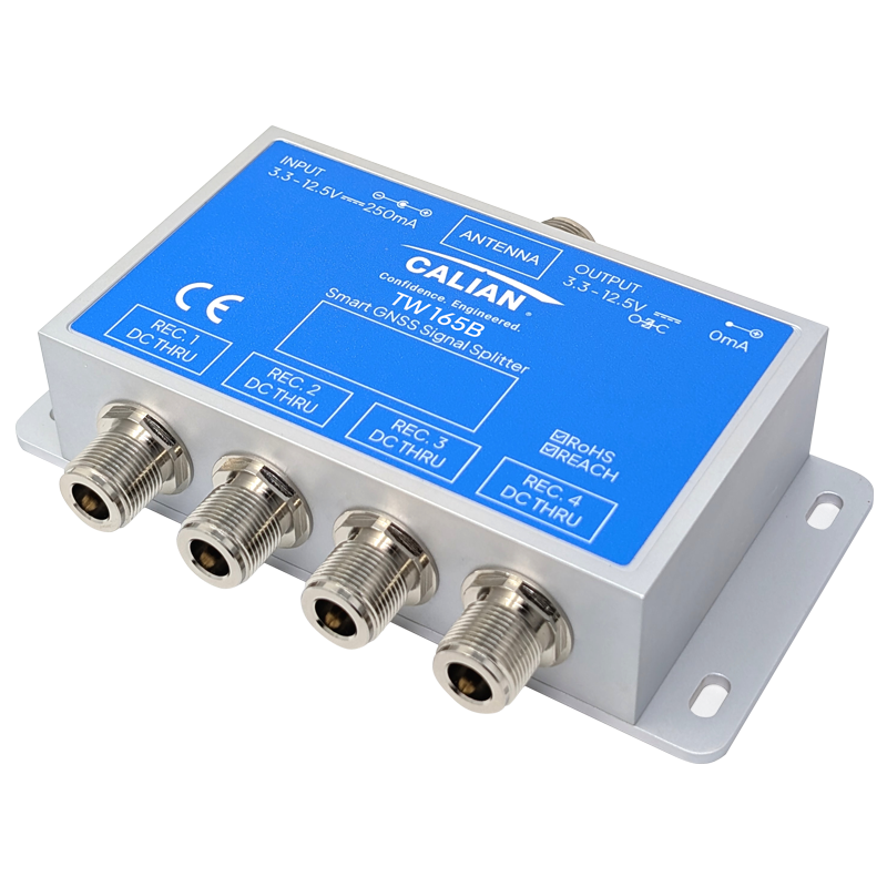 Tallysman TW165B to profesjonalny, inteligentny rozdzielacz sygnału w pełnym paśmie GNSS, który łączy jedną antenę z 4 odbiornikami i obsługuje GPS / QZSS-L1 / L2 / L5, QZSS-L6, GLONASS-G1 / G2 / G3, BeiDou-B1 / B2 / B2a / B3, Galileo-E1 / E5a / E5b / E6, NavIC-L5 i usługi korekcji pasma L i jest dodatkowo wyposażony w wzmacniacz 10dB w celu skompensowania strat podziału sygnału