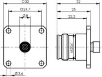 4.3-10 gniazdo panelowe kołnierzowe na kabel RG401/UT-250 , kołnierz 32x32 mm