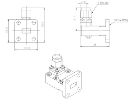 Adapter kątowy , kołnierz UBR(FBP) 320 (WR28) na K (2.92-SMA precyzyjne) gniazdo , zakres pracy 26.6-40 GHz. Możliwość zamówienia opcji ze złączem K (2.92) męskim.