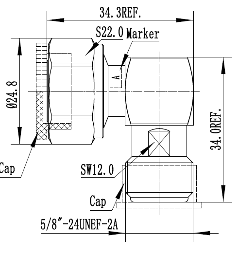 Adapter kątowy 4.3-10 wtyk - N gniazdo