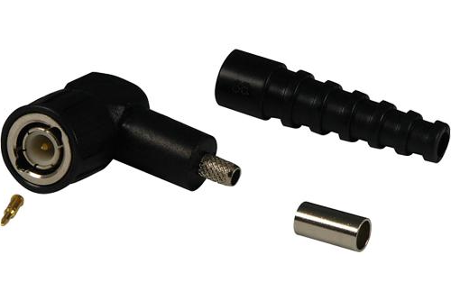 BNC wtyk zagniatany kątowy izolowany na kabel RG58/LL195