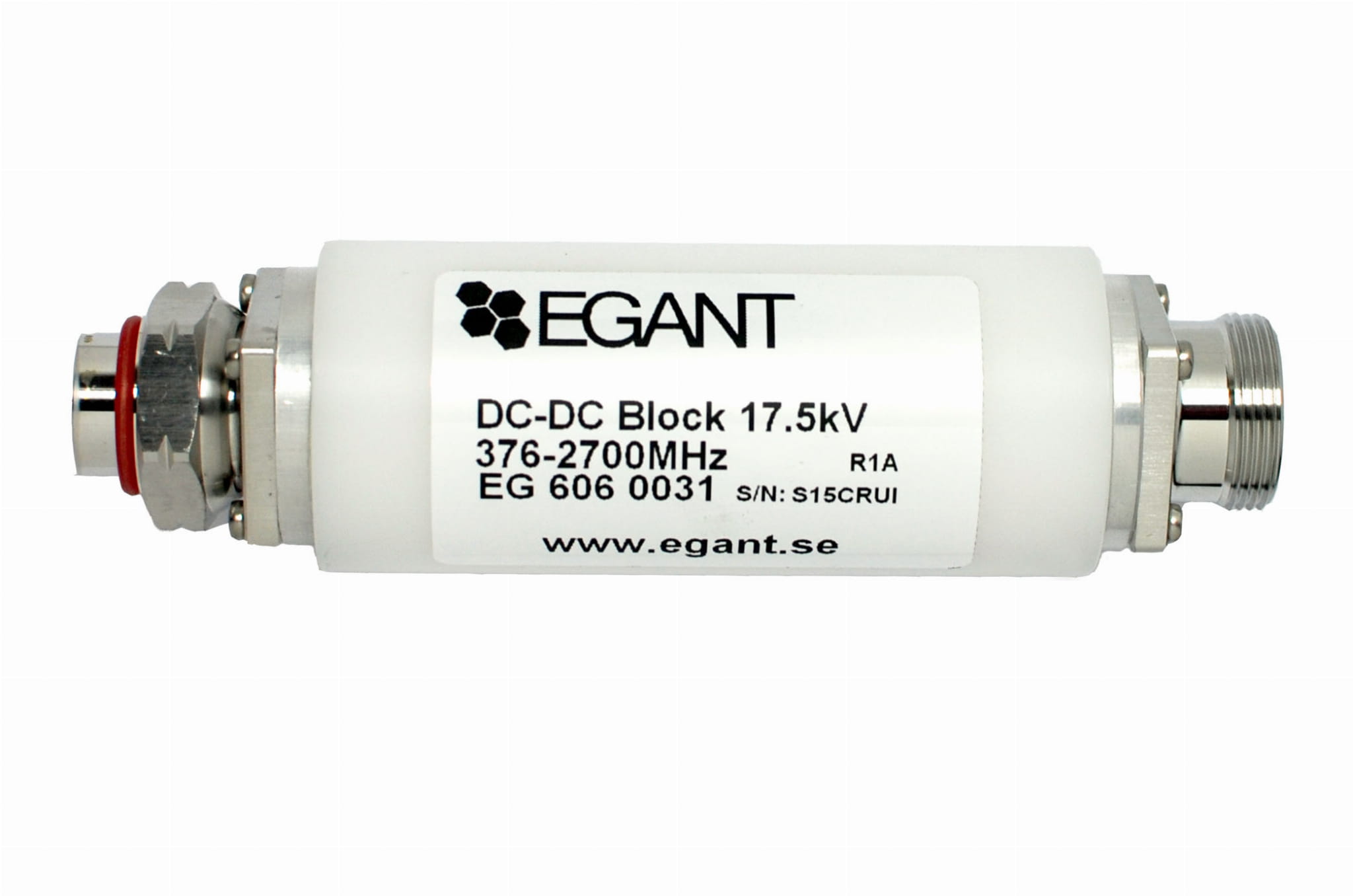 DC-block 17,5 kV 376 - 2700 MHz typu 7-16 męski-żeński. DC block eliminuje przepływy prądów stałych wzdłuż linii transmisyjnej nie blokując przepływu sygnałów RF. Stosowany głownie w tunelach kolejowych dla pociągów dużych szybkości (metro).