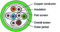 Kabel S/FTP Kat.7 linka 4x2xAWG26/7 , powłoka PUR w kol. zielonym w klasie Fca.