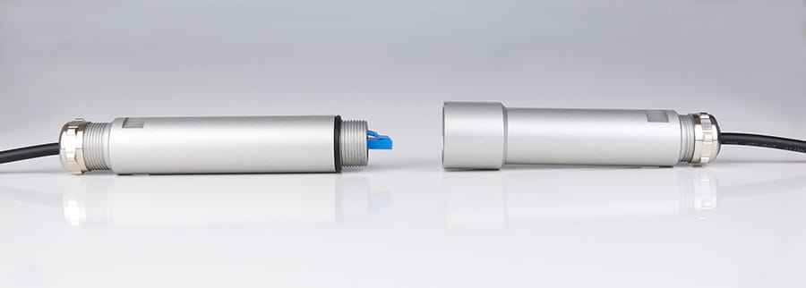 Łącznik hermetyczny systemu TOC ze złączami LC duplex wielomodowymi , szczelność IP 67. Stosowany do przedłużania kabli w warunkach terenowych.