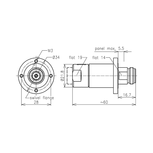 N gniazdo kołnierzowe skręcane na kable fiderowe 1/2" typu LCF12-50/LDF4-50