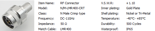 N wtyk zagniatany na kable typu CNT-400/LMR400/7810 , pin złocony