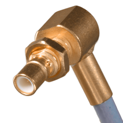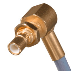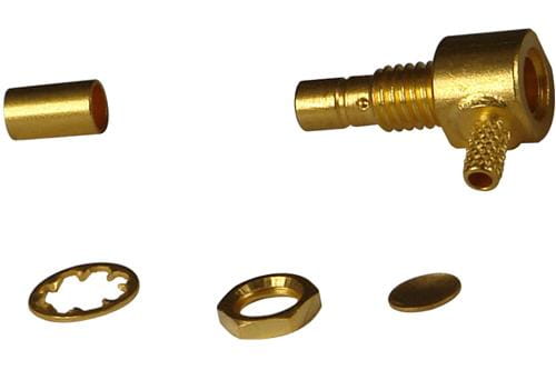 SMB wtyk panelowy zagniatany kątowy na RG174/316. DC 4 GHz
