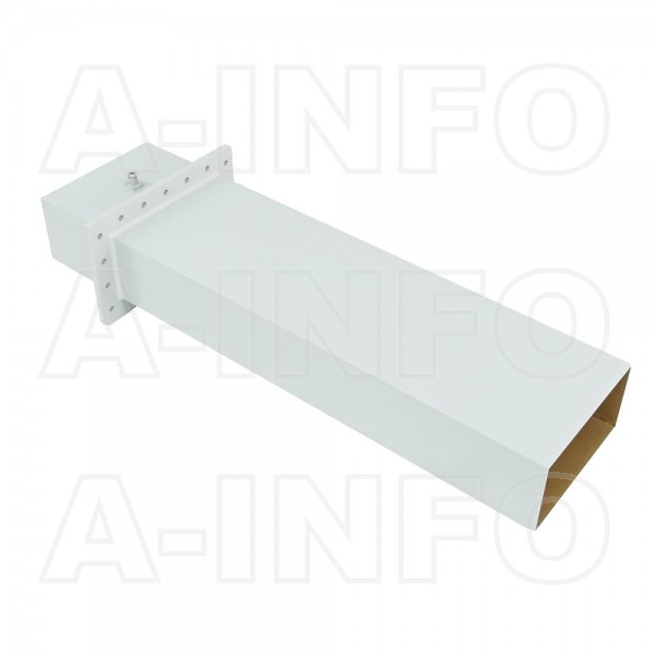 Sonda falowodowa WR975 z otwartym końcem, pracująca w zakresie częstotliwości od 0,75 do 1,12 GHz, z nominalnym wzmocnieniem 5 dB i niskim współczynnikiem SWR 2,0:1, z prostopadłym, koncentrycznym złączem wyjściowym typu N. Model WR975 charakteryzuje się równomiernym wzmocnieniem w całym zakresie częstotliwości, zapewniając wydajne parametry i kierunkowość. Zastosowano fazowanie o małym stopniu, aby uzyskać aperturę o ostrym ostrzu, minimalizującą dyfrakcję końcową. Ta sonda falowodowa z otwartym końcem ma polaryzację liniową i została zaprojektowana specjalnie do pomiarów i kalibracji w polu bliskim, zarówno planarnym, jak i cylindrycznym.